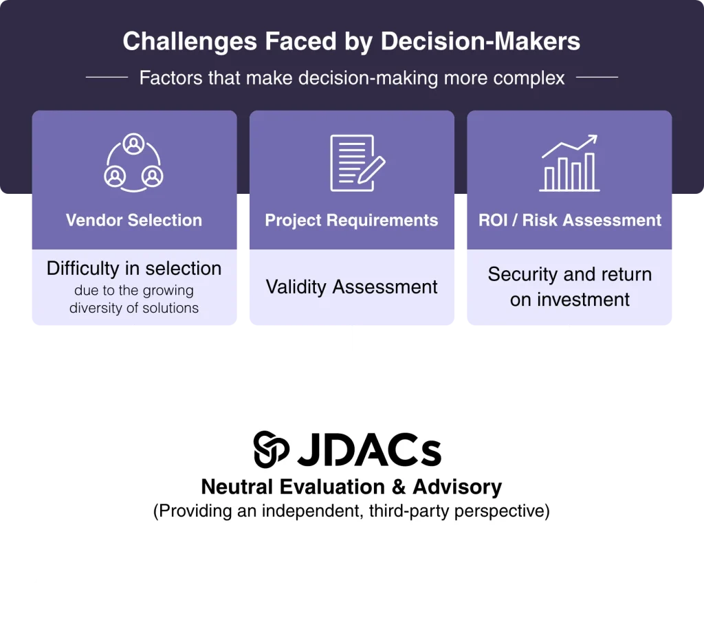 Japan Digital Advisory Council for Strategy (JDACs) was established in 2025 as a neutral third-party review organization for digital investment and strategy decisions. We are independent of any particular vendor or solution and provide reviews based on expertise and objectivity.